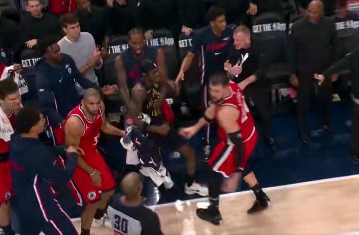 这场裁判的哨子真的是演都不演,装都不装了,在快船两节半就领先26分之后,裁判直接开始各种各样的乱吹。祖巴茨和范德彪在第4节出现了一次纠缠,裁判吹了双方犯规,可是肉眼可见的,那球是范德彪直接夹胳膊,夹着祖巴茨的胳膊,他就差直接把祖巴茨的手臂给卸了,一路夹着祖巴茨的手,裁判能吹双方犯规的,这球你能看懂吗?