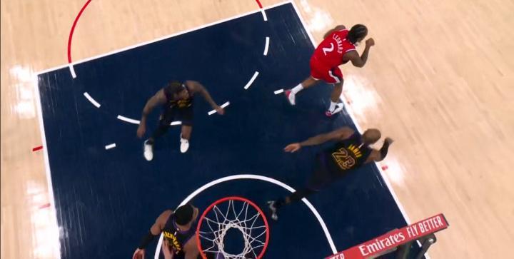 包括在比赛当中,莱昂纳德突到内线湖人4个人防守,詹姆斯一掌扇到他的肩膀上,范德彪还抓了他手一下,这球裁判也能不吹?小卡都急了。他打了三分钟4次突破被犯规1次没吹,泰伦卢赶紧把他换下,生怕他再突破就被湖人打死了。范德比尔特每一次对他的防守都在废人的边缘,八村塁生拉硬拽,詹姆斯偷偷下手。